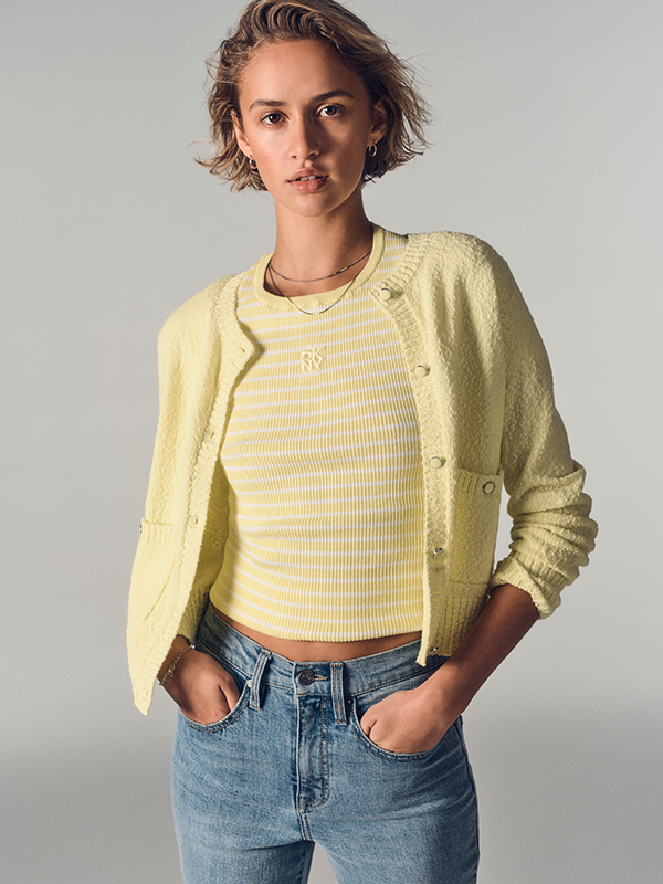 The key to between-seasons dressing: layerable, lightweight sweaters in the season's standout hues. | | | | |