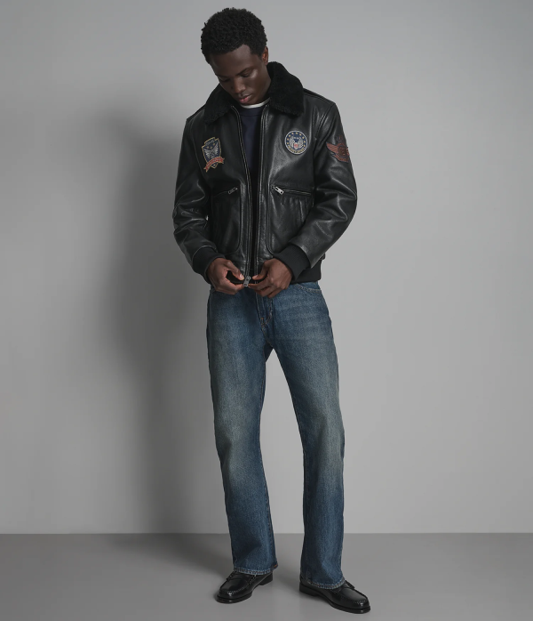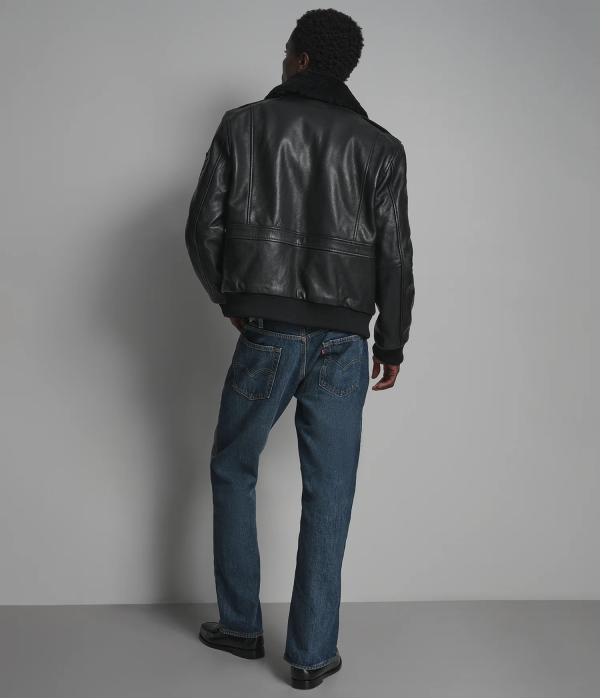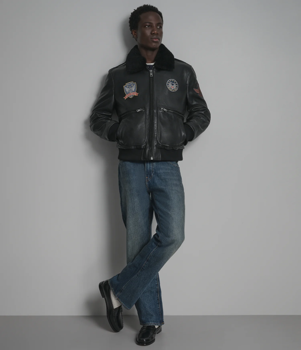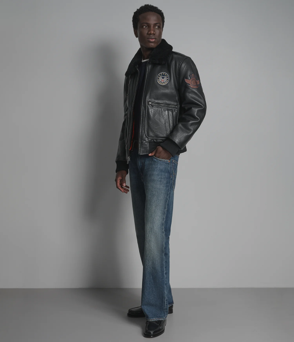 | | Tumbled, hand-finished leather accentuates the Cane aviator jacket, its shearling details adding a vintage look to chunky knits and heavyweight denim.