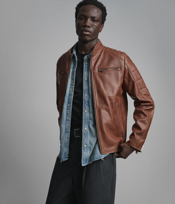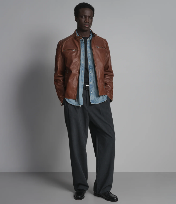 Vintage-treated genuine leather gives this jacket the character of a long-loved piece while remaining fresh and new, with bold racing stripes and quilted paneling for structure and resilience. Tapered at the waist, it layers effortlessly while adding rugged-cool sophistication to a button-down shirt and pleated trousers. | | Vintage-treated genuine leather gives this jacket the character of a long-loved piece while remaining fresh and new, with bold racing stripes and quilted paneling for structure and resilience. Tapered at the waist, it layers effortlessly while adding rugged-cool sophistication to a button-down shirt and pleated trousers. |